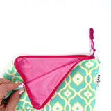 The days of carrying your wet swimsuit in an old grocery store bag are over (plastic bags are both blah looking and bad for the planet). Our wet bag is a much better solution: it's reusable, keeps moisture and mess contained and is also easy on the eyes! This zipper pouch is your on-the-go answer for damp bikinis, greasy sunscreen bottles, dirty baby clothes, etc... basically anything wet or messy that you want to keep separated. Throw it into your beach bag (or diaper bag) to make sure everything else stays clean and dry!