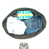 The bag's bottom and lining are made from a sturdy waterproof canvas - because you just never know! Two roomy interior zipper pockets (lined with a second accent Sun + Song fabric) give you a separate place for socks, undies, swimsuits, etc. The small zipper pocket on the front is the perfect spot for your passport or airline tickets.