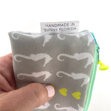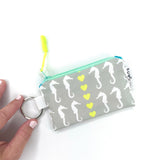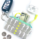 Sea Of Seahorses in Grey + Yellow, Keychain Mini Zip Pouch