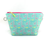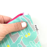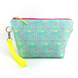 Want to show off your style? Clip on a Sun + Song wristlet strap (sold separately) to the sewn-in metal D ring and carry this pouch as a colorful clutch!