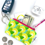 Lush Lemons in Yellow + Green, Keychain Mini Zip Pouch