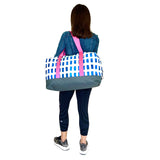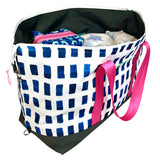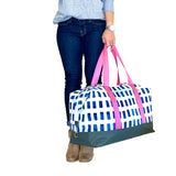 Painted Dashes in Blue + White, Water-Resistant Weekender Tote