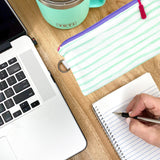 Studio Stripes in Green Blue, Recycled Pencil Case