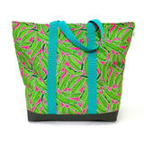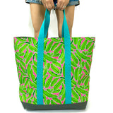 Banana Leaves in Green + Pink, Water-Resistant XL Beach Tote