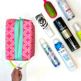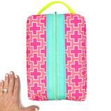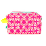Large - Preppy Plus Signs in Pink + Coral, Water-Resistant Boxy Toiletry Bag