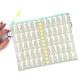 Sea Of Seahorses in Grey + Yellow, Water-Resistant Wet Bag