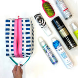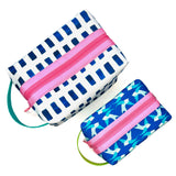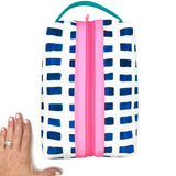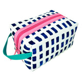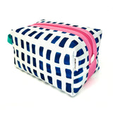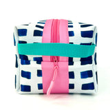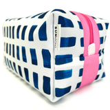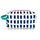 Large - Painted Dashes in Blue + White, Water-Resistant Boxy Toiletry Bag