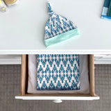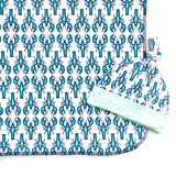 This super soft organic cotton knit swaddle blanket and hat set features Sun & Song's exclusive Lobsters design, with a sea of crustaceans that fade from navy blue to aqua on a white background. New moms will find one million uses for this colorful baby blanket from newborn swaddle to nursing cover up to stroller blanket. With professionally serged edges and a nice stretch to the fabric, your little one will feel snug and secure when swaddled, helping to ensure a calm and happy baby. This lightweight blanket folds up easily so you can throw it in your diaper bag and take it with you anywhere!