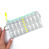 Sea Of Seahorses in Grey + Yellow, Recycled Pencil Case
