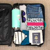 The bold fabrics and neat, rectangular construction make this water-resistant zippered pouch an absolute travel essential.