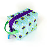 Peacock Feathers in Blue + Green, Water-Resistant Boxy Toiletry Bag