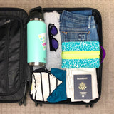 The bold fabrics and neat, rectangular construction make this water-resistant zippered pouch an absolute travel essential.