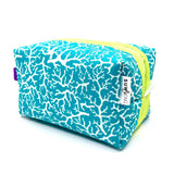 Coral Reef in Blue + White, Water-Resistant Boxy Toiletry Bag