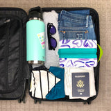 The bold fabrics and neat, rectangular construction make this water-resistant zippered pouch an absolute travel essential.
