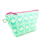 Want to show off your style? Clip on a Sun + Song wristlet strap (sold separately) to the sewn-in metal D ring and carry this pouch as a colorful clutch!
