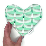 Ah, it's time to relax... and our Aromatherapy Weighted Eye Pillow has got you covered! This heart shaped therapeutic tool features Sun + Song's exclusive Captivating Cranes design printed on ultra soft velvet. Our Captivating Cranes design features crisp white and cool grey birds gliding in neatly overlapping layers across an aqua blue background. One of the world's tallest flying birds, cranes stand as symbols of enlightenment, longevity, and peace. The opposite side of this mask is a coordinating cool grey printed on shiny, smooth satin. Each eye pillow is filled with the perfect 8 oz. combination of organic lavender and organic flaxseed, creating a comforting but gentle pressure.