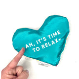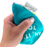 Ah, it's time to relax... and our Aromatherapy Weighted Eye Pillow has got you covered! This heart shaped therapeutic tool features Sun + Song's exclusive Gradient Squares design printed on ultra soft velvet. Our Gradient Squares design features a neat grid of squares in an rainbow array of colors. The opposite side of this mask is a coordinating turquoise blue printed on shiny, smooth satin. Each eye pillow is filled with the perfect 8 oz. combination of organic lavender and organic flaxseed, creating a comforting but gentle pressure.
