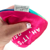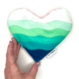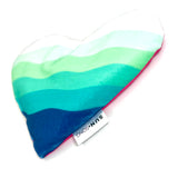 Ah, it's time to relax... and our Aromatherapy Weighted Eye Pillow has got you covered! This heart shaped therapeutic tool features Sun + Song's exclusive Ocean Waves design printed on ultra soft velvet. Our Ocean Waves design features our modern take on gently rolling waves in a gradient from aqua blue to deep navy blue. Scientific research has proven that just  being near the water can make you happier! The opposite side of this mask is a coordinating hot pink printed on shiny, smooth satin. Each eye pillow is filled with the perfect 8 oz. combination of organic lavender and organic flaxseed, creating a comforting but gentle pressure.
