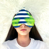 Palm Fronds And Stripes in Blue + Green, Aromatherapy Weighted Eye Pillow