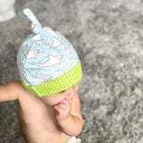 The soft and stretchy organic fabric and adorable designs make this top knot hat a must have for newborns!