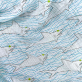 Sharks + Waves Organic Cotton Muslin Baby Blanket