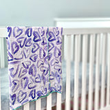 Wild Hearts in Purple, Organic Cotton Muslin Baby Blanket