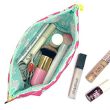 With a gusseted bottom and wide opening (similar to the shape of our makeup bag), this pouch gives you easy access to your goodies inside! The uses for this adorable zipper pouch are endless. The wide zipper opening makes this bag easy to fill with makeup, markers + pens, hairbrush + scrunchies, snacks, nail polish, tampons, etc. Fill it up and throw it in your purse, back pack or diaper bag and you'll always be able to find what your looking for...or carry it on its own as a clutch.